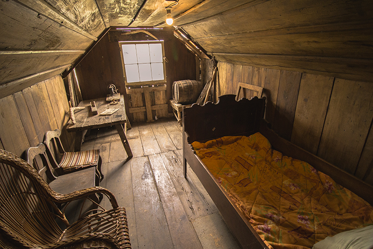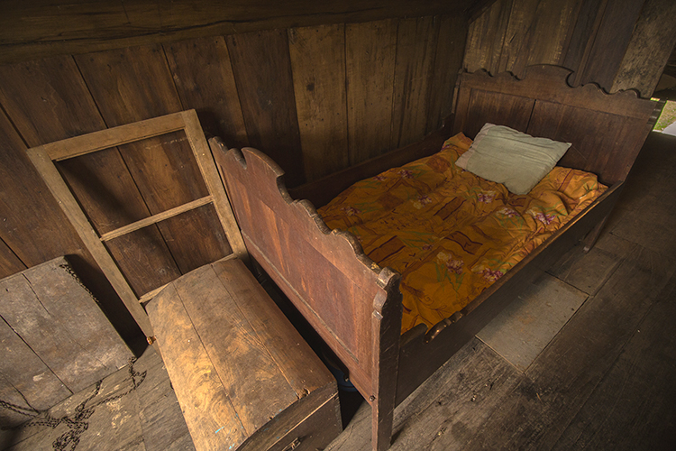 O quarto da antiga construção, no sótão, é mantido como na época dos colonizadores