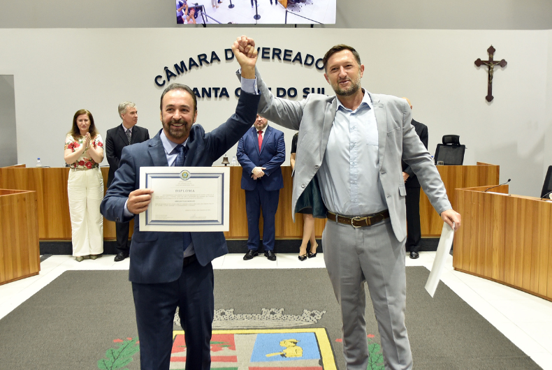 O fim da tarde dessa quarta-feira, 18, entrou para a história de Santa Cruz do Sul. Foi realizada, na Câmara de Vereadores, a solenidade de diplomação dos 17 eleitos para o Legislativo, vice-prefeito Alex Knak (MDB) e prefeito Sérgio Moraes (PL). Eles receberam o documento com o compromisso, solicitado pela juíza eleitoral, Luciane Inês Morsch Glesse, de superar as diferenças no período da campanha.