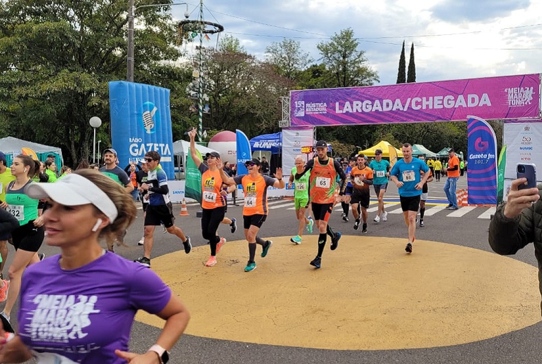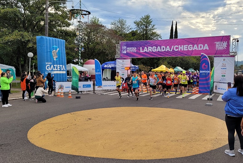Os cerca de 190 atletas inscritos na 4ª Meia Maratona de Santa Cruz do Sul tomaram as ruas na manhã deste domingo, 25. Eles percorrem um trajeto de 21 quilômetros, que passa pelos bairros Centro, Arroio Grande, Ana Nery, Distrito Industrial, Senai, Schulz, Avenida e Universitário. A largada ocorreu pontualmente às 7 horas e o tempo para conclusão da prova é de 3h30.