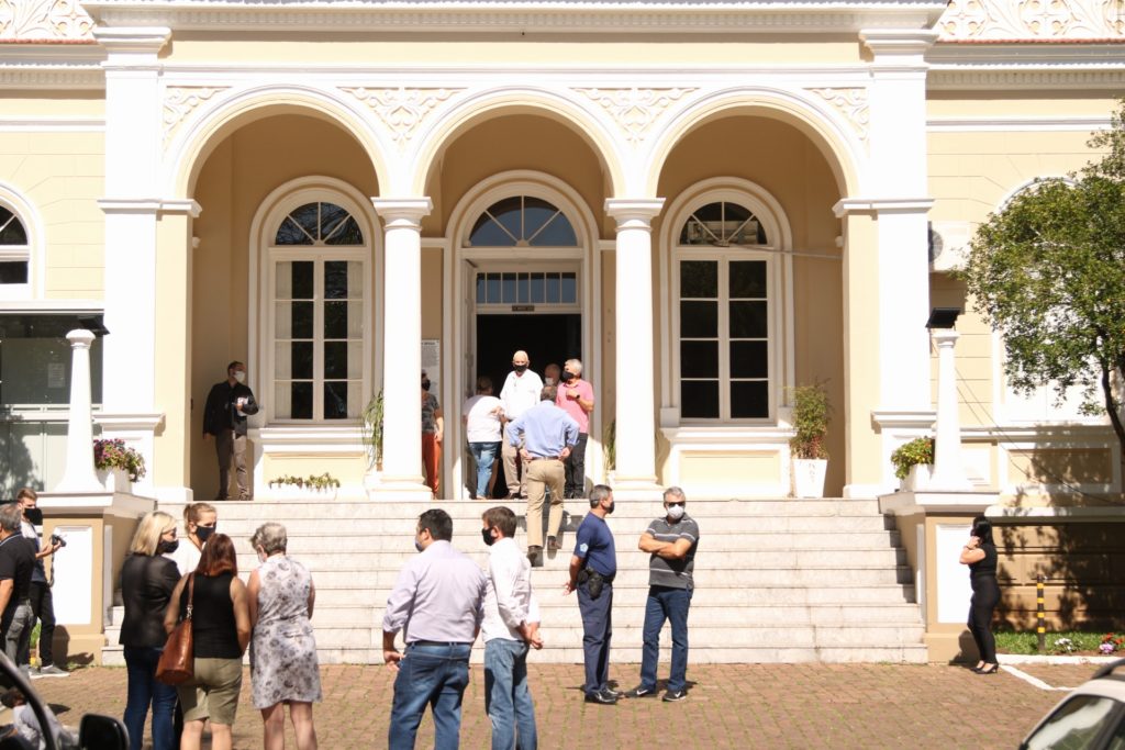 A movimentação no local foi intensa, e as despedidas precisaram ser breves. Por causa dos protocolos de segurança da pandemia do novo coronavírus, as pessoas não puderam permanecer dentro do Salão Nobre.