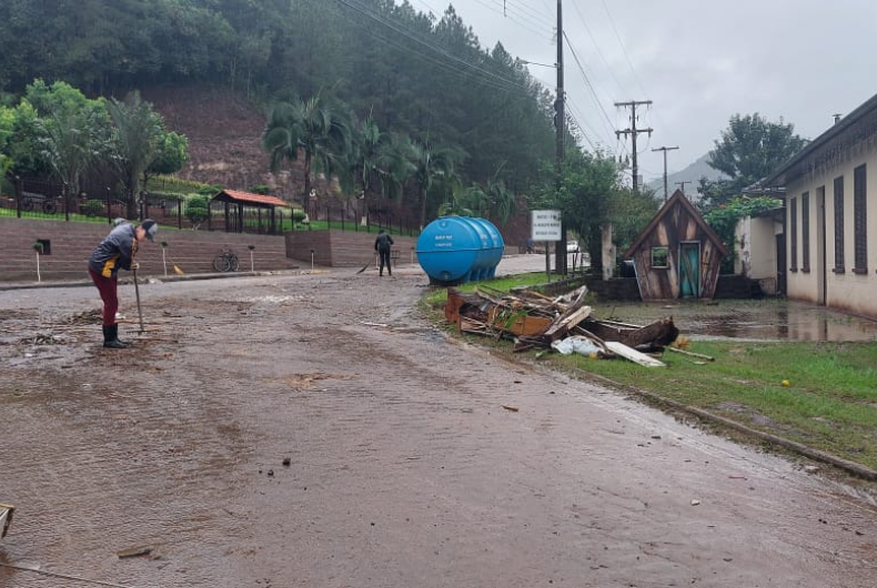 Uma das voluntárias que trabalha na limpeza das ruas, Evelin Weigel, conversou com a equipe e lamentou o que tem acontecido com a cidade. “É muito triste, porque a gente que mora aqui em Sinimbu e gosta muito da cidade, um lugar muito marcado também por vários pontos turísticos”, conta.