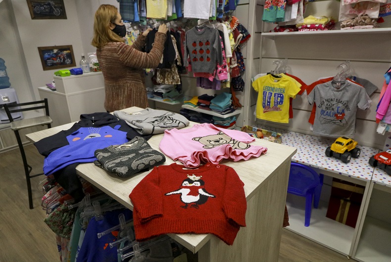 Também situada no Shopping, a loja Gravatinha Kids é voltada ao público infantil. A proprietária Priscila Moraes abriu seu negócio em outubro, durante a pandemia. “Muitas pessoas que estavam em casa voltaram a trabalhar, e depois que começaram as aulas já ficou melhor. O que mais vende são roupas para menina, casaco, legging. Semana passada, por exemplo, por incrível que pareça, eu vendi bastante saia, porque as mães compram para a menina usar com meia-calça.”