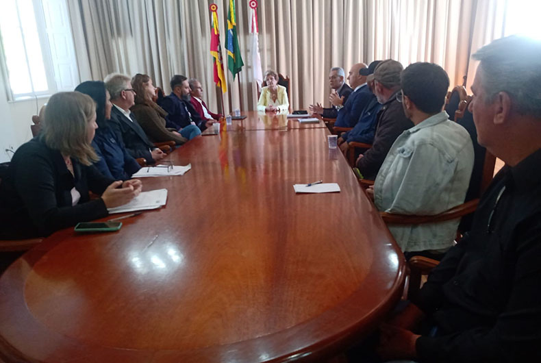 Os representantes do Sindicato dos Funcionários Municipais (Sinfum) e do Sindicato dos Professores Municipais (Sinprom) reuniram-se com a prefeita Helena Hermany nessa terça-feira, 3. Na pauta estavam questões como a instituição de um plano de saúde e a alteração de padrões de categorias ainda não atendidas, além da realização de concurso público e antecipação do calendário de negociação do próximo reajuste da categoria. A data-base é março de 2024.