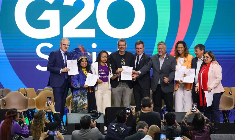 “Senhores e senhoras líderes do G20, é hora de assumirmos a responsabilidade de liderar uma transformação que seja efetivamente profunda e duradoura. Compromissos ambiciosos são essenciais para fortalecer as instituições internacionais, combater a fome e a desigualdade, mitigar os impactos das mudanças do clima e proteger nossos ecossistemas”, afirma o documento coletivo do G20 Social que será entregue pelo presidente Luiz Inácio Lula da Silva aos líderes das maiores economias do planeta.