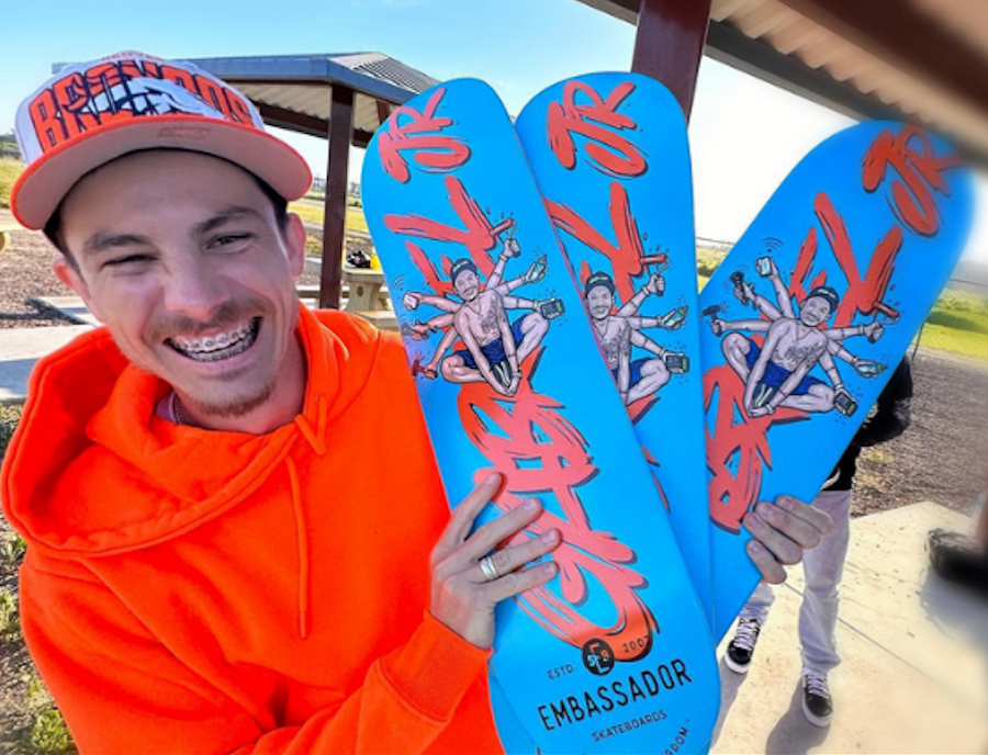 Gabriel Jr. assina um shape oficial da Embassador Skateboard