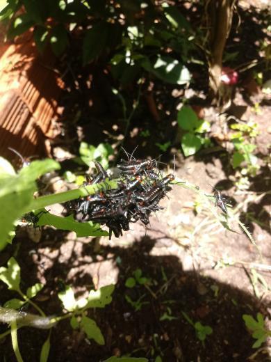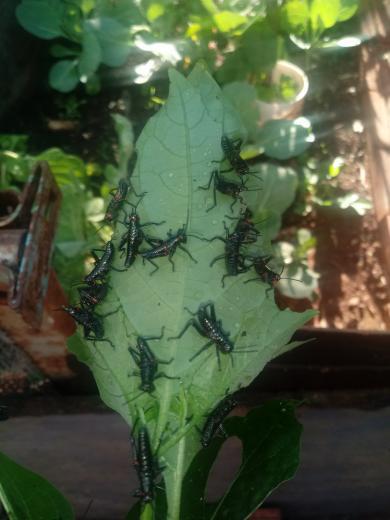 Um grupo de gafanhotos foi visto na propriedade do morador de Santa Cruz do Sul Rafael da Silva Michel, na tarde dessa terça-feira, 8. Os insetos estavam agrupados nas folhas da horta feita para consumo próprio, no Bairro Santuário.