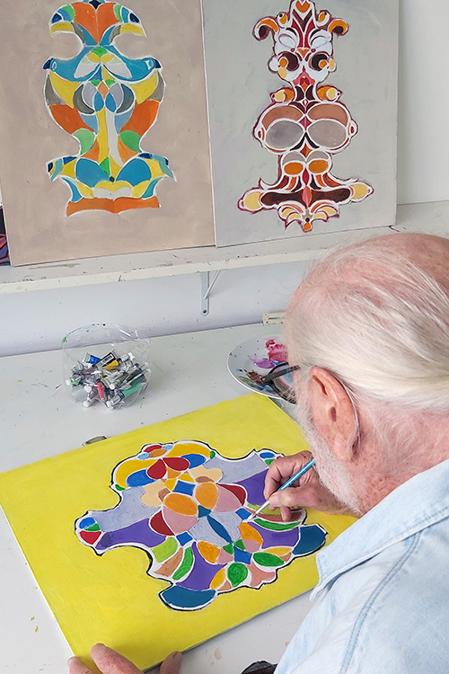 Um dia, revendo agendas para procurar contatos antigos, deu-se conta de tantos desenhos que nem ele mesmo lembrava. Os desenhos pareciam arabescos e eram recorrentes. Recortou tudo, em agendas que ainda tinha, e começou a pesquisar. Nascia uma nova inquietação.