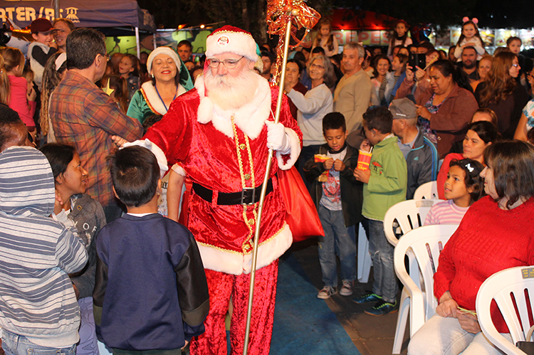 No palco, ele recebeu a chave da cidade das mãos do prefeito Maninho Trevisan e depois se deslocou até a casinha do Papai Noel, também na Praça, onde receberá a visita de crianças e famílias.