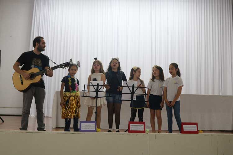 Coral da escola se apresentou com diversas canções em pontos da exposição