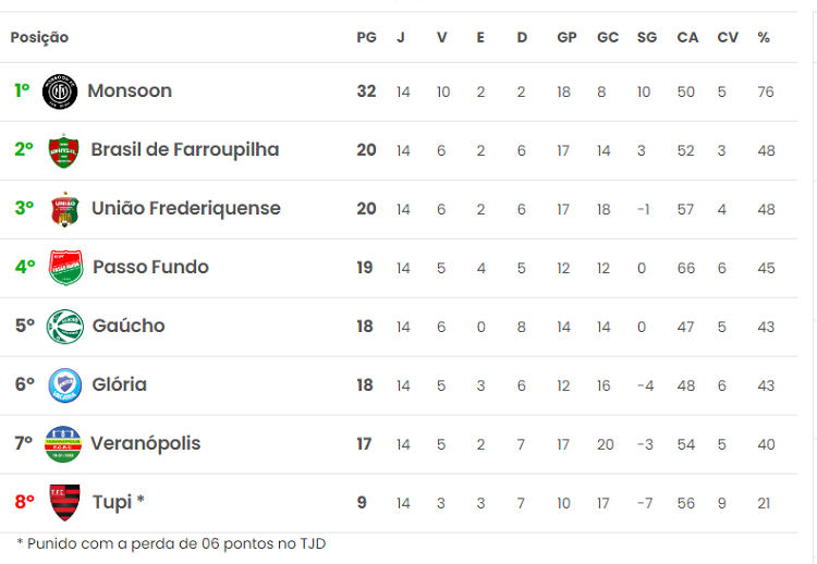 Classificação final da 1ª fase: (Fonte: FGF)