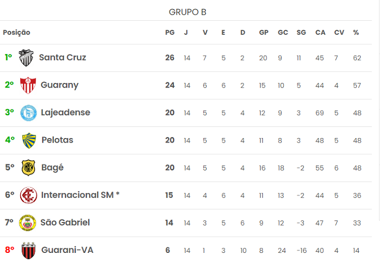 Precisando da vitória para buscar a vaga na próxima fase, o Pelotas contou com o fator casa para marcar seu gol aos cinco minutos da segunda etapa, com Tony Junior, e vencer o jogo por 1 a 0, resultado que classificou o Lobão em quarto no Grupo B, com 20 pontos. O Santa Cruz manteve a liderança da chave, com 26 pontos, e inicia a fase eliminatória contra o Passo Fundo, quarto colocado do Grupo A, fazendo o jogo decisivo nos Plátanos, em Santa Cruz do Sul (confira os confrontos da segunda fase abaixo).