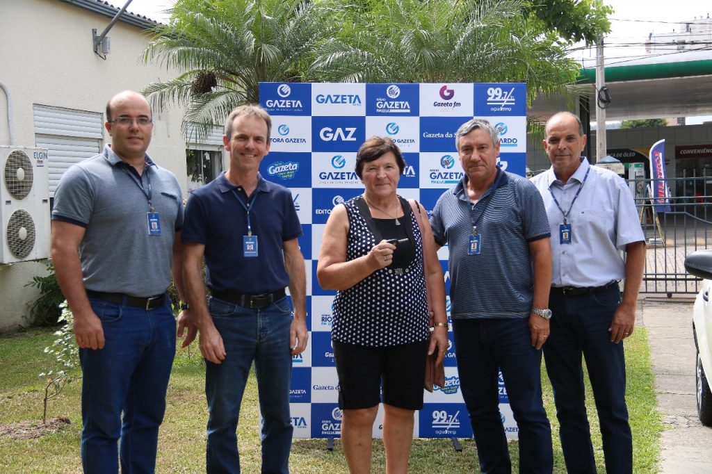 Ganhadora na campanha Assinatura Premiada, da Gazeta do Sul, a agricultora Lucia Maria Sehn, moradora de Linha João Alves, retirou o Fiat Mobi na tarde desta quarta-feira, 4, no pátio da Gazeta Grupo de Comunicações. Ela estava acompanhada do filho Glênio, da nora Helena, da neta Helen e da filha Clarice. O sorteio havia sido realizado no dia 27 de janeiro, na Casa de Clientes Gazeta.