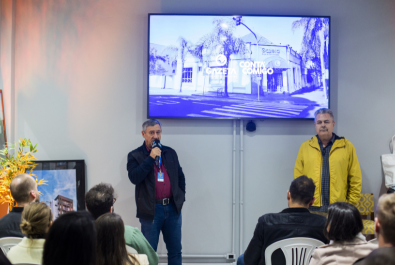 Um público formado por corretores, investidores, estudantes e profissionais da construção civil teve a oportunidade, na noite de terça-feira, de conhecer um pouco mais sobre a história e as potencialidades da Gazeta Grupo de Comunicações. A partir do tema “O papel das mídias tradicionais na atualidade”, o diretor-executivo Jones Alei da Silva apresentou dois painéis na segunda edição do Salão Imobiliário Rosacruz (Sirc), explicando os valores da empresa, plataformas em que atua e a importância da Gazeta para a comunidade santa-cruzense, do Vale do Rio Pardo e do Centro-Serra.