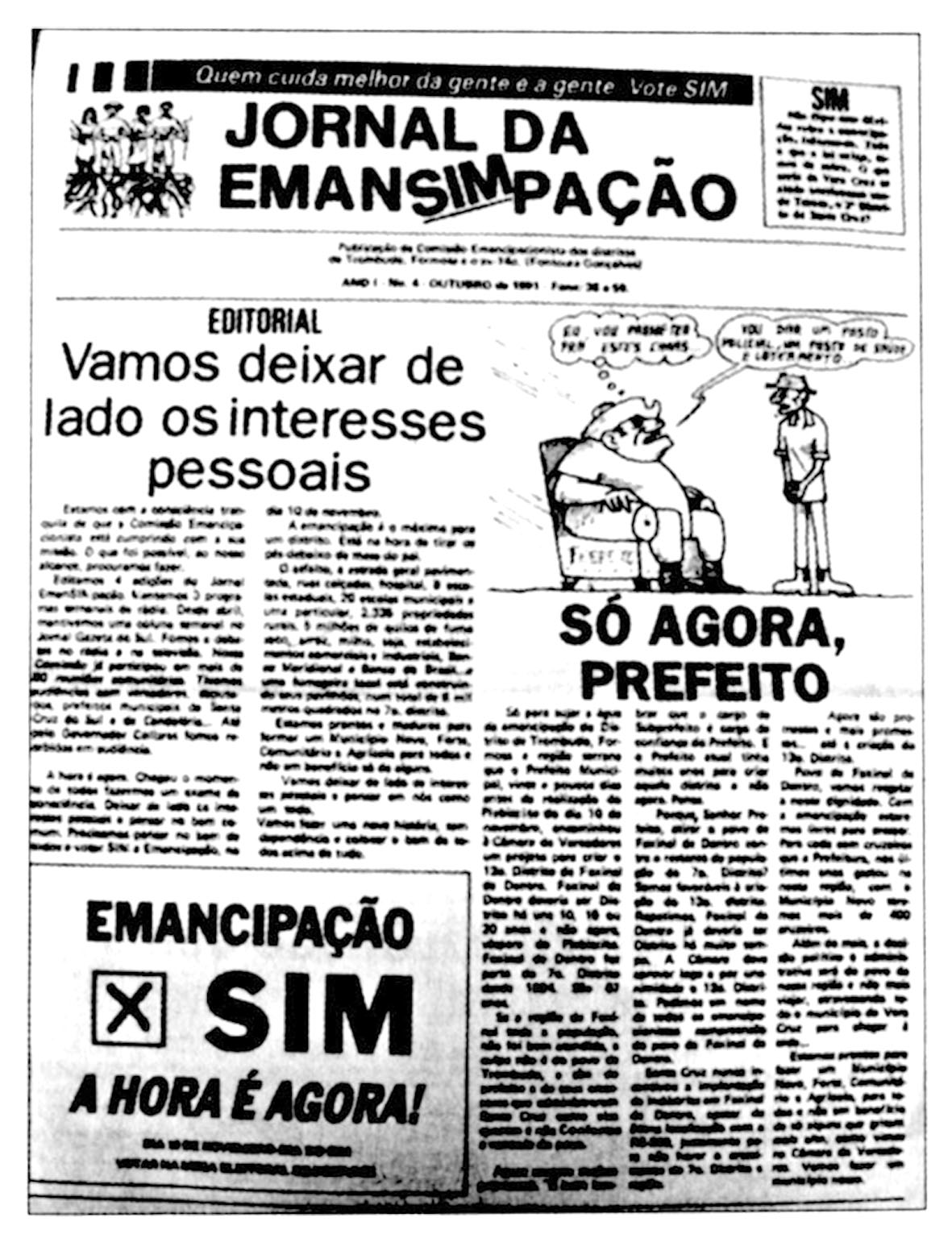O destaque, é claro, foi a jornada pela emancipação do município. O tema ganhou força em 1991, no qual conclamava os cidadãos a fazer parte do movimento. À cada semana, elencava os motivos para a luta em prol da separação e os ganhos da liberdade.