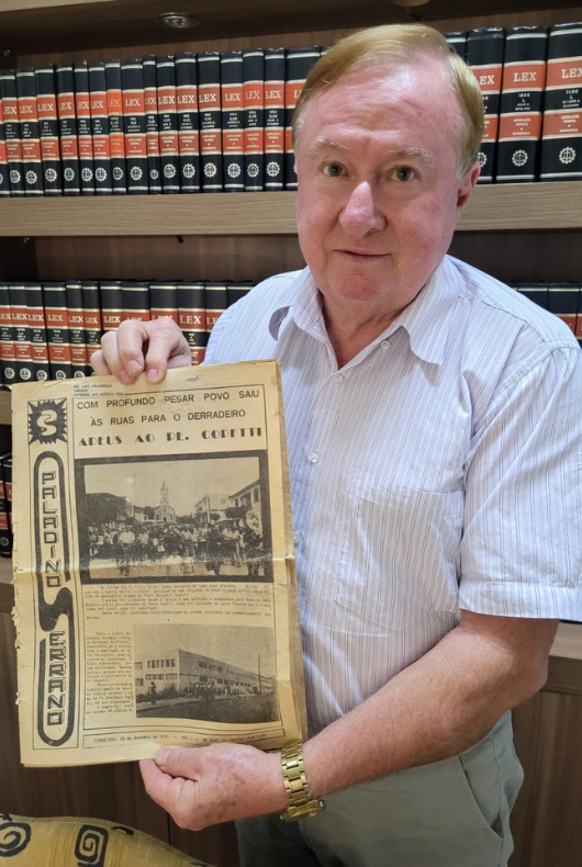 “Um dos vendedores de assinatura era irmão de um dos fundadores do jornal. Desde então, sigo como assinante”, diz o advogado. Um dos motivos que faz Colombelli manter seu vínculo com o jornal é a qualidade e a importância da Gazeta para a região. “É um dos meios de comunicação mais importantes, por isso não paro de assinar.” Em seus arquivos, Colombelli guarda com carinho uma das primeiras edições do Paladino, de 9 de dezembro de 1975. “Ter o jornal é uma tradição e pretendo mantê-lo dentro da família.”