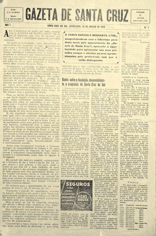 Desde a primeira edição da Gazeta de Santa Cruz em janeiro de 1945 até os dias de hoje, o jornal impresso acompanhou as transformações da sociedade em diferentes áreas, destacando-se por sua identidade característica.