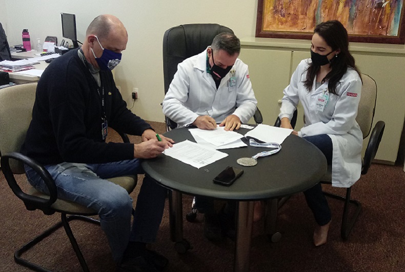 Contrato foi assinado por Alexandre Cruxen, da Gazeta Grupo de Comunicações, com Paulo Krebs e Carmela Krebs, do Radson