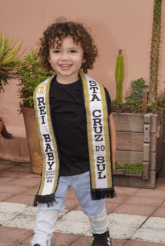 A estilosa Maria Flor Soares tem 2 anos e é filha de Gabriel de Freitas Soares e Marcielle Lopes. Os pais a descrevem como uma menina inteligente, simpática e feliz. O clique mostra que ela estava pronta para passear! Descrito pelos pais como inteligente e amoroso, Ben-Hur Vasconcellos Escouto Ferreira tem 2 anos. Filho de Carolina Vasconcellos Escouto e João Carlos Ferreira, ele estava pronto para curtir o arraiá!Na passarela, Sofia Gass da Silva! A pequena, de 2 aninhos, é filha Richeli Gass e Édson Hochscheidt da Silva, que a descrevem como uma menina super alegre, educada e que adora brincar.Em um passeio no Shopping Santa Cruz, Anthony Gabriel da Silva Vieira foi fotografado pela mamãe Tayziane Patrícia da Silva. Ele tem 2 anos e, segundo a mãe, é uma criança alegre, amorosa e que gosta de brincar.Aos 2 aninhos, David Pinheiro Amaral já adora jogar bola! Filho de Luana Cristina Pinheiro Figueiredo e William Luciano Lopes Ávila Amaral, ele é descrito como alegre, sorridente, brincalhão e dançarino.Cheio de estilo, o pequeno Enzo Gabriel Santos, de 2 anos, já conquistou vários títulos.Ele foi clicado pela estilista Claudia Karnopp. Os pais, Daiane Solf e Vitor dos Santos, o descrevem como um menino alegre, esperto, carinhoso e sorridente.Vitoria Finger Pires Maciel, filha de Adriano Ayres Pires Maciel e Camila Finger Pires Maciel, adorou se vestir de caipira. Aos 2 anos, esbanjou alegria e graça na festa São João é no São João, realizada no último sábado.Isaac Padilha Joaquim tem dois anos e é cheio de estilo. Filho de Juliana Padilha Joaquim e Ivan de Oliveira Joaquim, para os pais, Isaac é uma criança muito inteligente, além de carinhoso com outras crianças e adultos.Com muito estilo, a pequena Sophie Couto Garmatz, de 2 anos, adora dançar. Filha de Vanessa Couto da Silva e Icaro Ferroni Garmatz, os pais a descrevem como uma criança alegre, carinhosa e inteligente.O pequeno Miguel Maciel Nunes tem 2 anos e é filho de Carine Fabiane Maciel e Raimundo Nonato Cavalcante Nunes. Ele é modelo infantil e mini influencer.