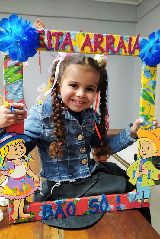 Manuella Ferreira Jaromicz, de 3 anos, é descrita pelos papais, Raul Jaromicz Filho e Bianca Rosangela Ferreira, como alegre, sorridente e muito falante. Só na pose para a foto junina!Apesar do mês junino recém ter passado, o João Artur Souza Oliveira prefere mesmo é o Natal! Os pais, Larissa Oliveira e Johann Falconi, descrevem o pequeno, de 3 anos, como inteligente, educado, brincalhão e sorridente.Maitê Bauermann Sins completou 3 anos no último dia 22 de junho. Ela é filha de Jenifer Bauermann e Marcos Sins, que a descrevem como inteligente, carinhosa e amável.Com 3 aninhos, Aurora Araújo Santos já veste a camisa tricolor. Ela é filha de Eliane Beatriz de Araújo de Moraes, que descreve a pequena como espontânea, doce e muito inteligente.