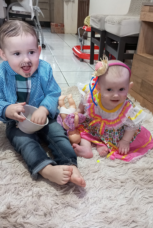 O pequeno Arthur da Motta Brandão, de 8 meses, é descrito pelos pais, Luciara Barbosa da Motta e Vanderlei César Brandão, como alegre, carinhoso e inteligente.Com 4 meses, a pequena Rebeca Dalberto entrou no clima de São João, com direito a bandeirinha e tudo. Ela é filha de Ivy Morganna Lucas e Luiz Henrique Trindade Dalberto.O pequeno Leonardo Prade Müller, de 8 meses, esbanja fofura. Ele é filho de Camila Prade e Maikel Mülle, que o descrevem como alegre, carinhoso e sapeca.