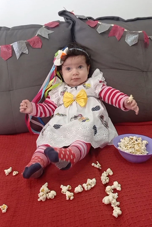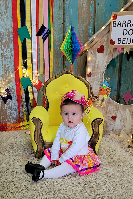 Paixão dos papais, a pequena Isabella Segatto tem 4 meses. Ela é descrita pelos pais, Junior Segatto e Tais Segatto, como carinhosa, sorridente, dengosa e muito esperta. E também entrou no clima de São João!