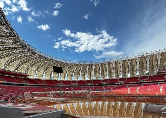 A citação inspiradora “Nunca duvide de um povo que ergueu um gigante sobre as águas” está na entrada do túnel de acesso ao gramado do Beira-Rio, simbolizando a coragem e a resiliência do clube e de seus seguidores. A frase ganha ainda mais significado diante dos esforços realizados para reconstruir o que foi destruído pela tragédia, ressaltando a conexão entre o Internacional e seu fiel público.