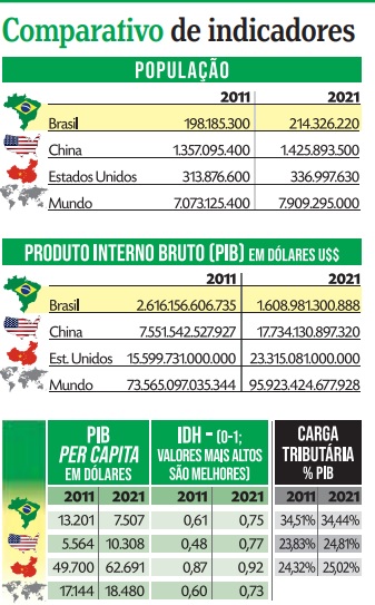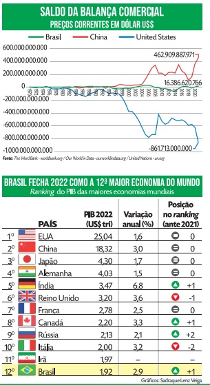 Arelação diplomática ou comercial entre o Brasil e a China configura a aproximação entre dois dos maiores países do planeta em diferentes indicadores. Ambos estão entre os cinco maiores territórios nacionais existentes: a China é o terceiro, após Rússia e Canadá, seguida de Estados Unidos e Brasil. E estão também entre os mais populosos: a China, na verdade, era o líder do ranking, embora dados recentes, de maio, sugiram que a Índia acaba de assumir esse posto. De todo modo, os chineses somam 1,412 bilhão, em dados do Banco Mundial, de 2021. E o Brasil é o sétimo, com mais de 203 milhões, conforme o novo Censo do Instituto Brasileiro de Geografia e Estatística. Na prática, os chineses somam nada menos do que sete vezes o total dos brasileiros.