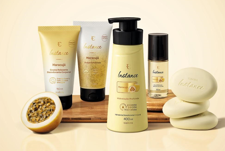 Compostos por ingredientes naturais e com texturas inovadoras, os novos produtos da linha Instance, da Eudora, prometem hidratação profunda, mas com secagem rápida. O cheirinho e os ativos de nutrição são de maracujá, ideais para revigorar a pele. A fragrância é floral, frutal e vibrante.