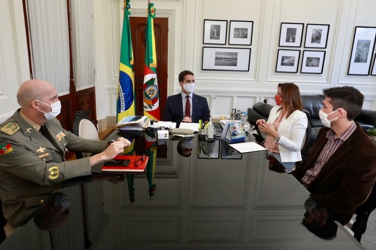 Governador se reuniu com o coronel Mohr, comandante-geral da BM; a delegada Nadine, chefe de Polícia; e delegado Bodoia | Foto: Palácio Piratini