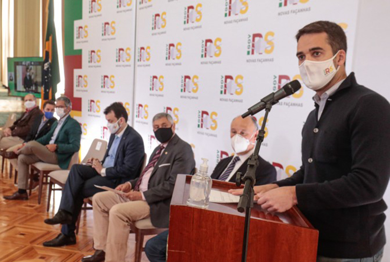 Em cerimônia transmitida ao vivo do Salão Negrinho do Pastoreio, no Palácio Piratini, na manhã desta segunda-feira, 12, o governador Eduardo Leite sancionou seis projetos de lei (PLs) de autoria de deputados estaduais. Os projetos de lei sancionados serão publicados em edição extra do Diário Oficial do Estado.