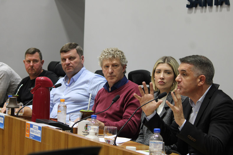 Representantes do Legislativo de Santa Cruz do Sul, autoridades regionais e o titular da Secretaria Nacional de Apoio à Reconstrução do Rio Grande do Sul, Maneco Hassen, reuniram-se quinta-feira, 11, à noite para tratar sobre os investimentos feitos pelo governo federal no município e na região no pós-enchentes de 2024 e neste ano.