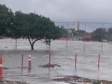 Enquanto o Internacional se concentra para encarar o Fluminense, no Rio de Janeiro, pela semifinal da Copa Conmebol Libertadores, o CT Parque Gigante sofre com a forte chuva que atinge Porto Alegre. Com a elevação do nível do Guaíba, boa parte do complexo ficou completamente alagada nesta quarta-feira, 27, incluindo os campos de treinamento.