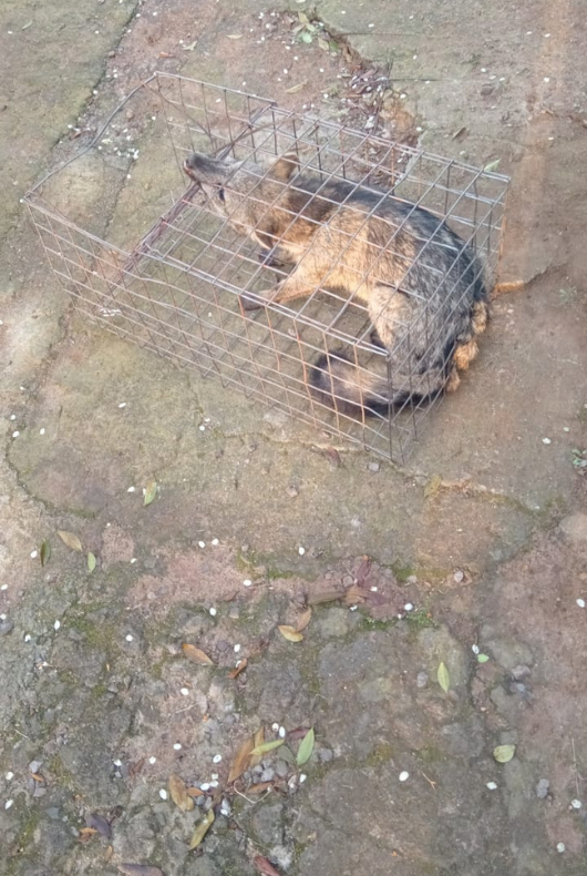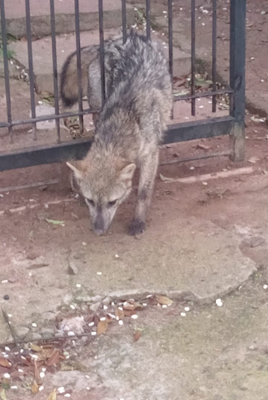 Um morador do Bairro Margarida, em Santa Cruz do Sul, foi surpreendido com uma cena inusitada ao acordar na manhã desta quinta-feira, 18. Na grade do portão da frente de sua casa, na Rua Edmundo Baumhardt, um graxaim havia ficado preso entre os ferros.