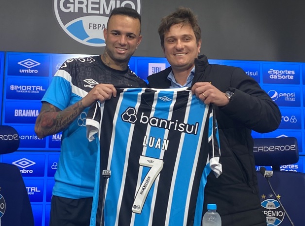 O Grêmio apresentou o meia-atacante Luan, de 30 anos, no início da tarde desta terça-feira, 1º, na sala de imprensa Antônio Augusto, no CT Presidente Luiz Carvalho. O jogador volta ao clube com um contrato até o fim do ano e vencimentos na faixa de R$ 50 mil. No Grêmio, Luan disputou 288 jogos (268 titular), com 75 gols marcados e 36 assistências concedidas.