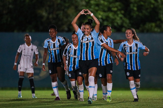 O Grêmio conquistou a primeira vitória no Brasileirão Feminino. Diante do seu torcedor, na segunda-feira, 6, o time aplicou 2 a 1 no Atlético-MG, no CT Hélio Dourado, em Eldorado do Sul. Caty, de pênalti, e Raquel Fernandes, a estreante da noite, garantiram os três pontos. O Atlético, ainda no segundo tempo, marcou com Soraya.