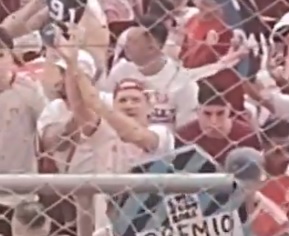 Torcedor do Inter faz gesto discriminatório na direção de torcedores gremistas