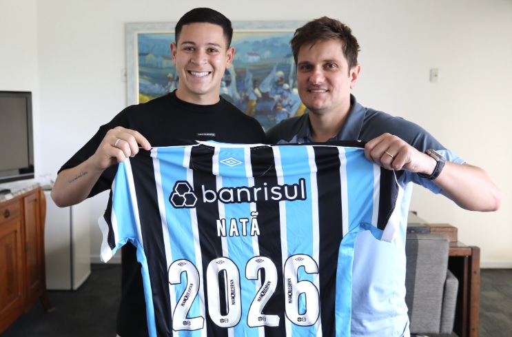 O Grêmio anunciou a renovação de contrato do zagueiro Natã. O novo vínculo do atleta irá até o final de 2026. O vice de futebol Antonio Brum acompanhou o ato da assinatura no CT Luiz Carvalho.