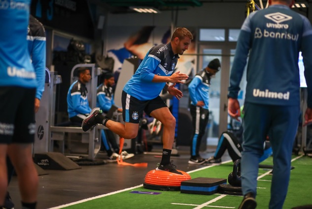 O elenco do Grêmio permaneceu na academia nesta terça-feira