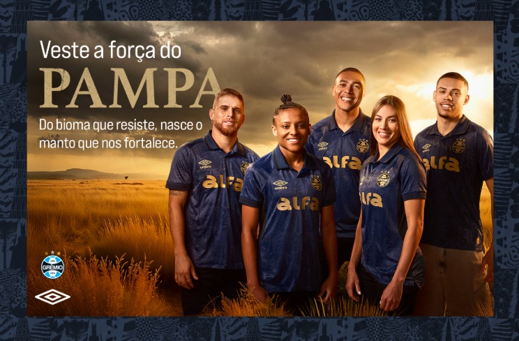 “A cada dia mais se fala da importância na preservação do planeta, o quanto temos que cuidar das florestas, dos biomas, de sermos conscientes em todos os aspectos, e a nova terceira camisa do Grêmio é uma referência ao Pampa, bioma típico do Rio Grande do Sul que é muito rico, abrigando diversas espécies de aves e animais em geral, assim como vegetação. Esse novo manto do Imortal, além de estar muito bonito, também é marcante, com essa identificação do clube com a região”, aponta Eduardo Dal Pogetto, diretor da Umbro no Brasil.