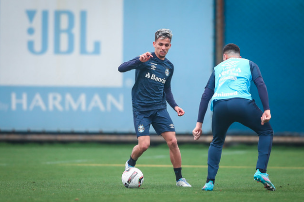 Na manhã desta terça-feira, 11, o elenco do Grêmio treinou no CT Luiz Carvalho. A atividade foi marcada por uma longa conversa do técnico Renato Portaluppi com os jogadores, durante cerca de 25 minutos. Apenas ele falou e gesticulou, sem clima de descontração. No trabalho com bola, o treinador esboçou uma equipe com cinco alterações em relação à formação inicial diante do Londrina. Além do zagueiro Kannemann, que está suspenso pelo terceiro cartão amarelo, Edílson, Diogo Barbosa, Villasanti e Bitello também receberam coletes.