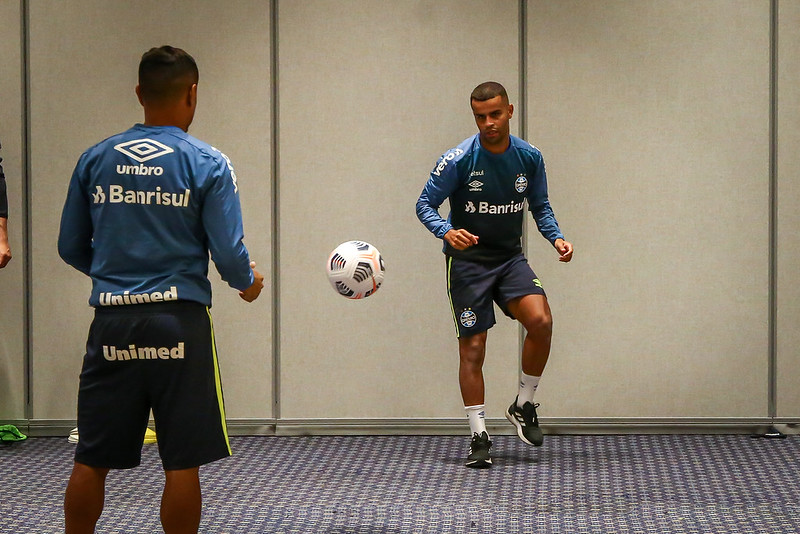 O meia Jean Pyerre pode ficar à disposição já no sábado, diante do Caxias. O atacante Pepê, também em fase final de recuperação, pode ser opção na partida de volta contra o Independiente Del Valle.