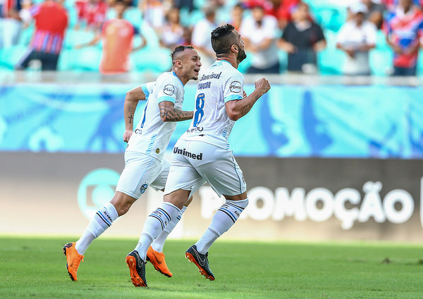 Não foi fácil, mas o Grêmio conseguiu vencer o Bahia na tarde deste domingo, 3, na Arena Fonte Nova, em Salvador. A equipe de Renato Potaluppi sofreu, foi dominada pelo time da casa, mas anotou dois gols e conquistou os três pontos. O pimeiro gol saiu aos dez minutos. Maicon cobrou um pênalti, Douglas espalmou e, no rebote, ele mandou para o fundo das redes. O outro tento saiu já nos acréscimos, com Thaciano.
