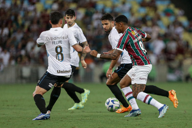 O Fluminense chegou ao gol em uma penalidade aos 31. Rodrigo Ely cortou a bola com a mão quando Martinelli tentava avançar. Arias deslocou o goleiro para abrir o placar. Na reta final, o Grêmio reagiu. Aos 42, Villasanti lançou e Suárez ficou livre para avançar. O uruguaio driblou Fábio e bateu para colocar na rede. A virada veio aos 44. Suárez cruzou da esquerda e Carballo finalizou em cima da defesa. Galdino aparou a bola, abriu espaço e bateu de canhota da entrada da área. Mandou no canto direito, sem defesa para Fábio. Aos 48, Arias cruzou e Nino cabeceou no canto esquerdo. Caíque saltou para espalmar.