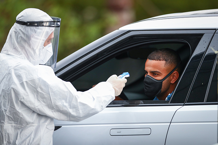 O protocolo foi o mesmo utilizado para os jogadores que se reapresentaram na terça-feira. Eles chegaram em grupos de cinco e, ainda dentro de seus carros, tiveram a temperatura corporal medida. Depois, os atletas foram individualmente para uma tenda e passaram por mais uma verificação de temperatura, desta vez usando mediação de oxigênio periféricos e imunoteste para dosagem de anticorpos, além de responderem um questionário produzido com auxílio da Confederação Brasileira de Futebol.