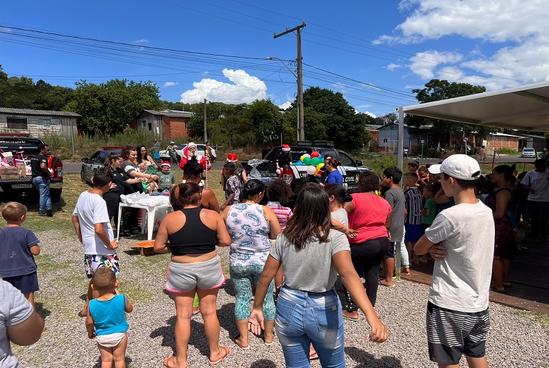 Um grupo de policiais civis realizou ação de Natal voltada aos alunos da EMEF Santuário, localizada no Bairro Santuário, em Santa Cruz do Sul. Os nomes das crianças contempladas, num total de 48, foram indicados pelas professoras da escola. Outras crianças também apareceram no local no momento da entrega dos itens, sendo todas contempladas com presentes.