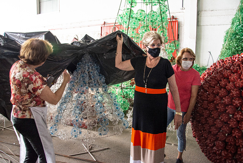 Em 2020, por causa da pandemia, as voluntárias não se reuniram e a Praça da Bandeira não recebeu a decoração natalina. Neste ano, ainda sob os reflexos da crise sanitária, parte do grupo retomou o trabalho em agosto. Com o tempo exíguo e o menor número de participantes, priorizou-se a recuperação das peças já prontas e a produção de alguns ornamentos novos. As voluntárias contam com o apoio da Prefeitura para a compra de alguns itens, como as luzes de Natal, o transporte das peças e a cessão de funcionários para a soldagem das estruturas e serviços elétricos.