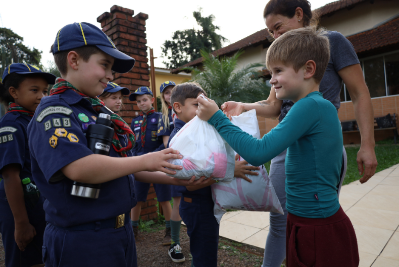 Integrantes do Grupo Escoteiro MacLaren, sediado em Linha Santa Cruz, percorreram as ruas do bairro na tarde de sábado com o objetivo de recolher agasalhos. Divididos em dois grupos e acompanhados de escoteiros adultos, os lobinhos (crianças de 6 a 10 anos de idade) convocaram os moradores da região a vasculharem os guarda-roupas atrás de peças quentes e em boas condições, que podem esquentar outras pessoas neste inverno.