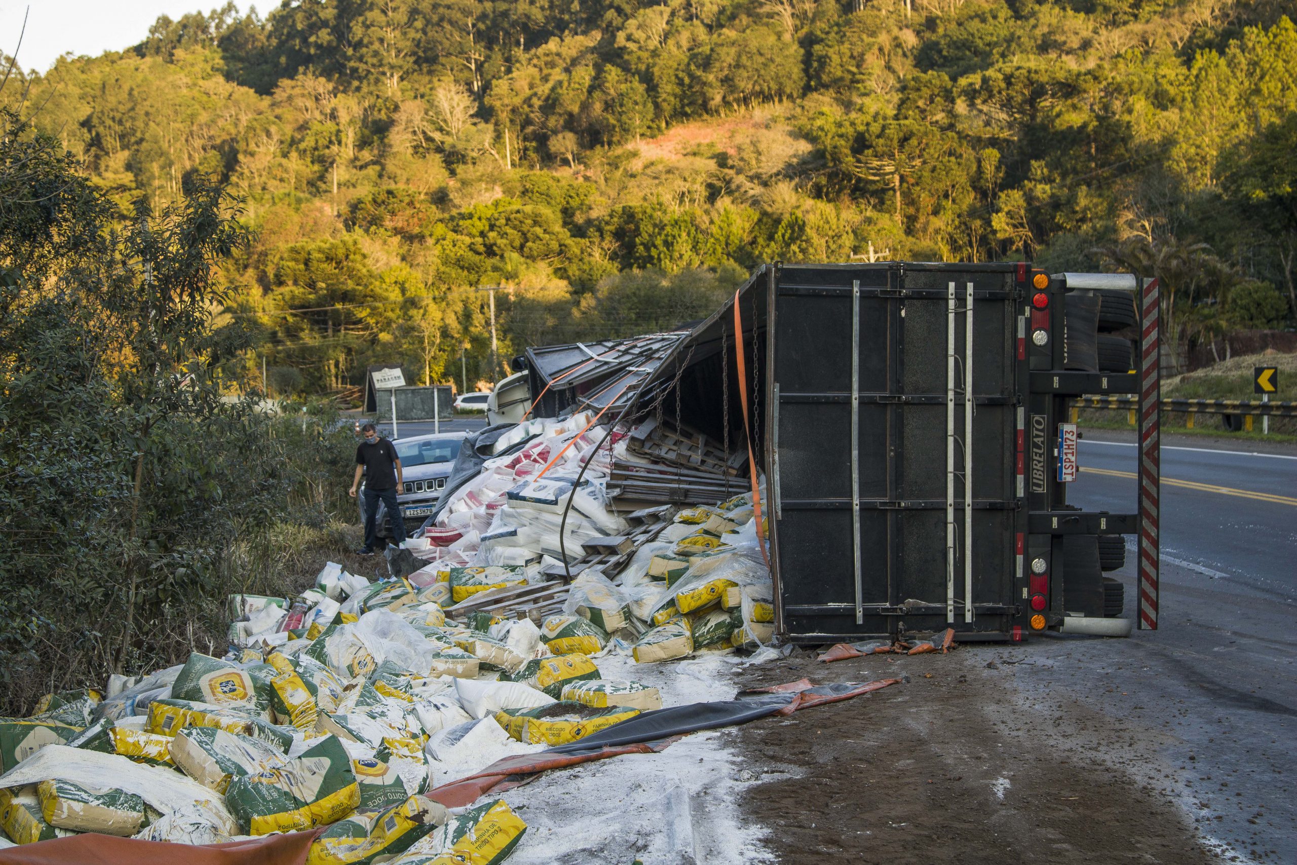 Percebendo a dificuldade de encontrar uma solução, Merten contatou novamente o Comando Rodoviário da Brigada Militar e solicitou apoio para sinalizar a rodovia, enquanto a equipe do restaurante realizava a remoção da carga. “Estava feio, daqui a pouco ia começar a se espalhar. Ali do lado tem um arroio e possivelmente isso ia cair dentro da água”, afirma. Segundo Merten, o problema não era a farinha – que acabaria por se decompor na natureza – mas sim a quantidade de plástico existente nas embalagens. O material recolhido foi encaminhado ao descarte correto.