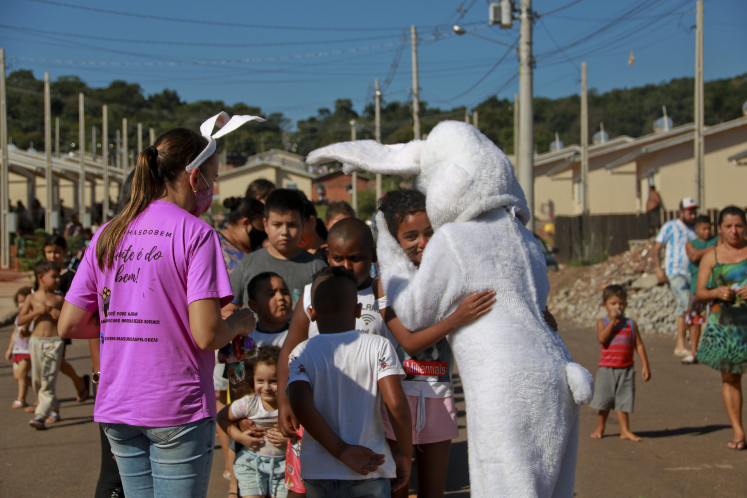 Com os dias ensolarados do final de semana as entregas foram um sucesso, especialmente com a presença de uma das voluntárias fantasiada de Coelho da Páscoa, o que chamou a atenção e motivou abraços e sorrisos das crianças. Uma das organizadoras do recebimento no loteamento Mãe de Deus, Gabriela Nicaretta aprovou a ação. “Para nós é maravilhoso. São poucas pessoas que reconhecem o nosso bairro, e aqui existem muitas pessoas carentes. Os grupos estão sempre trazendo alegria para as crianças daqui, desde o Natal, e agora também na Páscoa”, ressaltou.