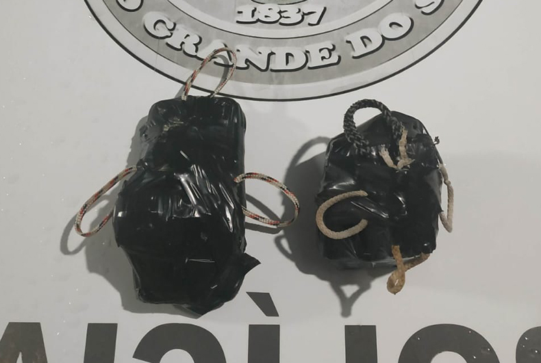 Um policial militar que atuava na guarda externa do Presídio Regional de Santa Cruz do Sul localizou, na madrugada deste sábado, 9, duas embalagens no pátio da unidade. Nos pacotes havia dois celulares, carregador, fone de ouvido e cabo USB, além de 13 gramas de cocaína e 244 gramas de maconha. Os itens foram arremessados para dentro da casa prisional. Não houve identificação de suspeitos.